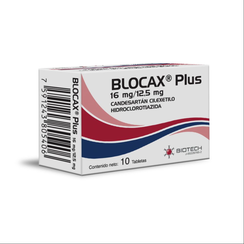 Cada tableta contiene: 16 mg de Candesartán Cilexetilo, 12,5 mg de Hidroclorotiazida, 53,36 mg de Lactosa monohidrato; en estuches con 10 y 30 tabletas.