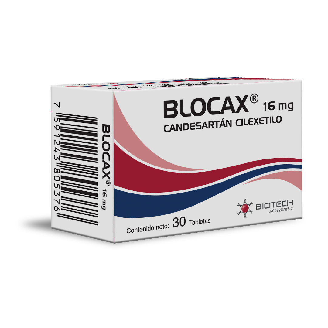 Cada tableta contiene: 16 mg de Candesartán Cilexetilo, 136 mg de Lactosa monohidrato; en estuches con 10 y 30 tabletas.