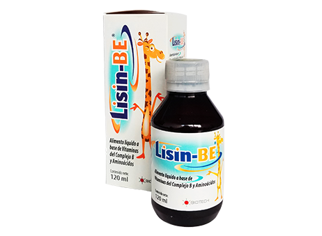 Cada mL contiene: 0,18 mg de Vitamina B1 (Tiamina Clorhidrato), 0,20 mg de Vitamina B2 (Riboflavina Sodio Fosfato), 0,22 mg de Vitamina B6 (Piridoxina Clorhidrato), 0,20 mcg de Vitamina B12 (Cianocobalamina), 1,40 mg de Vitamina B3 (Niacinamida), 42,86 mg de Lisina Clorhidrato, 13,40 mg de Treonina, 5,60 mg de Metionina, 1,20 mg de Triptófano. No contiene azúcar; estuche con frasco contentivo de 120 mL con copita dosificadora.