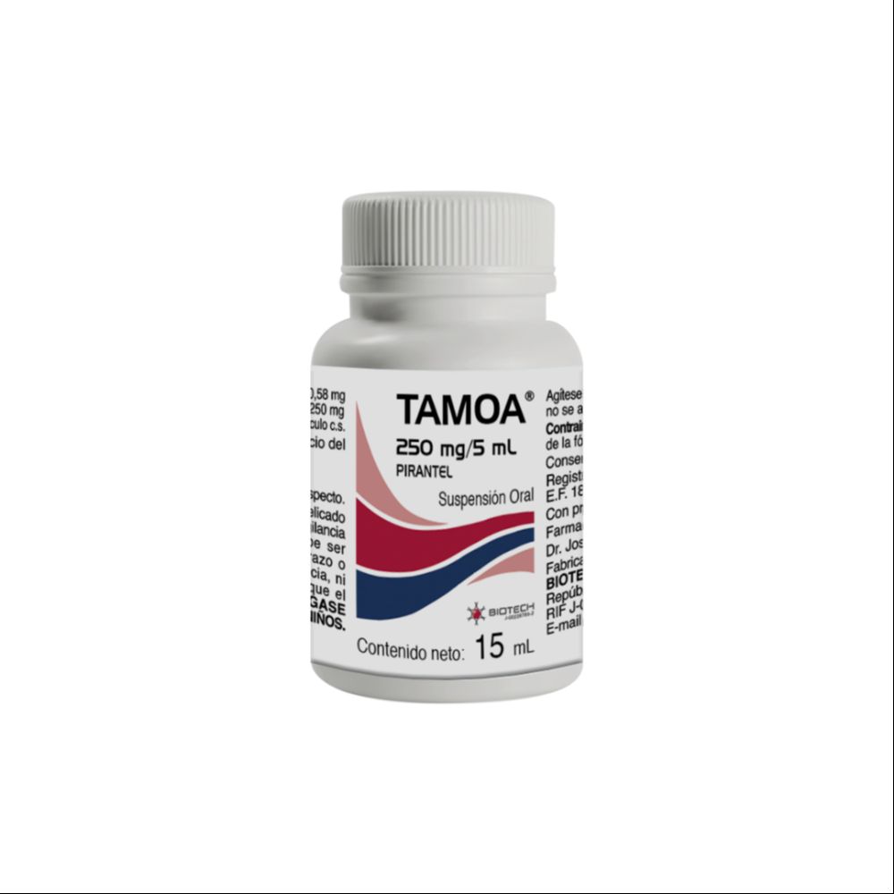 Cada 5 mL de suspensión oral contiene: 720,58 mg de Pirantel Pamoato, equivalente a 250 mg de Pirantel base; en frasco contentivo de 15 mL.