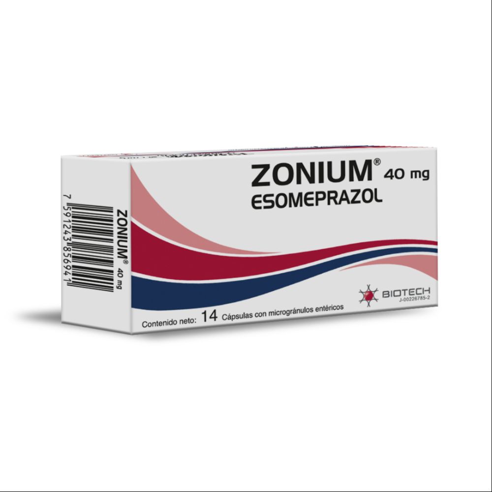 Cada cápsula contiene: 40 mg de Esomeprazol; en estuche con 14 cápsulas con microgránulos entéricos.
